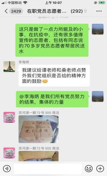 疫情时期的“特殊党费”。为了防护隔离服能尽快购置到位,在社区一线中发挥作用,谭老师主动在社区报到党员群里发出了倡议:党员自愿参与交一笔“特殊党费”购买隔离服捐赠给六泉桥社区所辖的4个小区物业和居委会用于抗议。此次“特殊党费”得到了社区广大党员的积极响应,共发起三笔,总额5000元,4月8日下午正式到活捐赠给了社区,并委托社区支部书记转捐赠给各个小区物业,得到了社区居民的广泛好评。