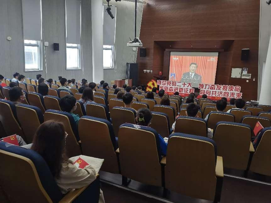 2022年10月16日上午10点,6776永利集团党委组织学院全体师生收看中国共产党第二十次全国代表大会,学院领导班子成员、党支部书记、师生代表75人在嘉定校区德才馆报告厅及441会议室集中收看,其余党员同志300余人因疫情防控要求,在线上进行同步收看。