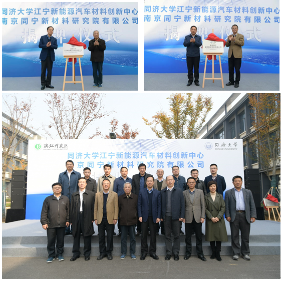 11月29日,yl6776永利集团江宁新能源汽车材料创新中心暨南京同宁新材料研究院有限公司揭牌仪式在江宁滨江开发区举行。中科院院士姚熹、南京市政府副秘书长郭明雁和yl6776永利集团校长助理余卓平、南京市科委副巡视员杜新江分别为创新中心和同宁公司揭牌。江宁区分管副区长马强,区部门、滨江开发区和yl6776永利集团相关领导以及受邀的行业内专家、教授共同出席仪式。
