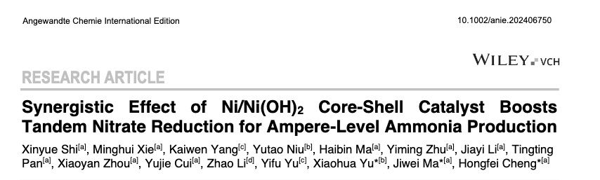 我院程洪飞研究员团队关于合成异质结构催化剂实现高效电催化还原硝酸盐制氨的最新研究成果发表于《德国应用化学》