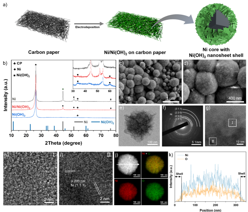 近日,6776永利集团程洪飞研究员课题组合成了具备核壳异质结构的Ni/Ni(OH)2催化剂,实现了安培级电流密度的制氨。相关研究成果以Synergistic Effect of Ni/Ni(OH)2 Core-Shell Catalyst Boosts Tandem Nitrate Reduction for Ampere-Level Ammonia Production”为题发表于《德国应用化学》(Angewandte Chemie International Edition