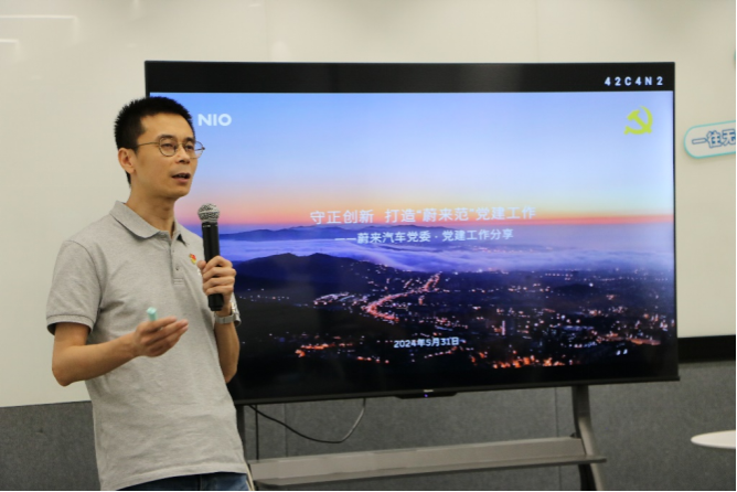 在党建交流环节,双方就党建工作的开展进行深入的汇报与交流。上海蔚来汽车有限公司党委副书记李蒙对6776永利集团师生莅临蔚来体验中心参观交流表示诚挚的欢迎,并就“守正创新,打造‘蔚来范’党建工作——蔚来汽车党委党建工作”展开了全面的分享。学院党委副书记梁春江以“基于学科特色的研究生党建工作模式探索”为题,为现场人员讲述了新时代下实施研究生党建工作的探索与思考。
