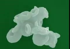 本图为实验过程中研究不同反应温度时间下Fe2O3纳米环的生长情况的SEM图片,图中可以观察到Fe2O3纳米环在220℃,反应时间为48小时条件下自组装得到的类似于摩托车赛手的形貌。