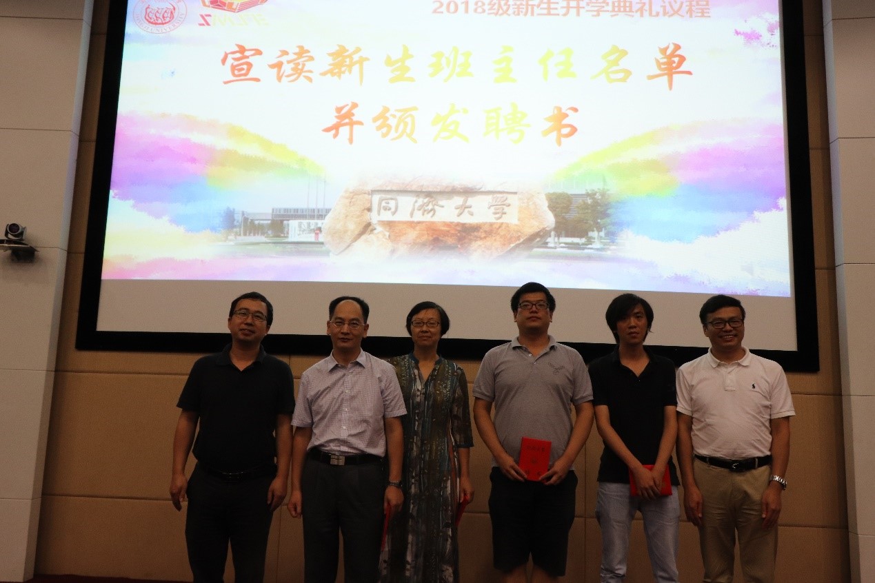 最后,学院党委副书记袁华老师宣读新生班主任名单,学院副院长邱军教授和学院高分子材料系主任杜建忠教授为新生班主任发放聘书,让我们向这些辛苦灌溉莘莘学子的园丁致敬。