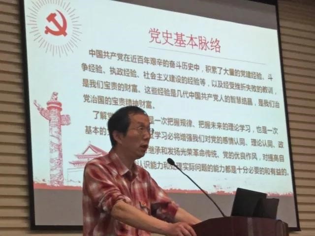 王书记从近代史讲起,将党的历史按建党、新中国成立、改革开放及进入社会主义建设新时代作为几个重要阶段,在此过程中,中国特色社会主义理论不断完善。王中平书记始终围绕历史为什么选择了中国共产党这一话题讨论,并结合当代中国面对的国际国内形势,论述了完成两个一百年目标的严峻挑战,提出我们要在新时代建设中坚持四个自信。