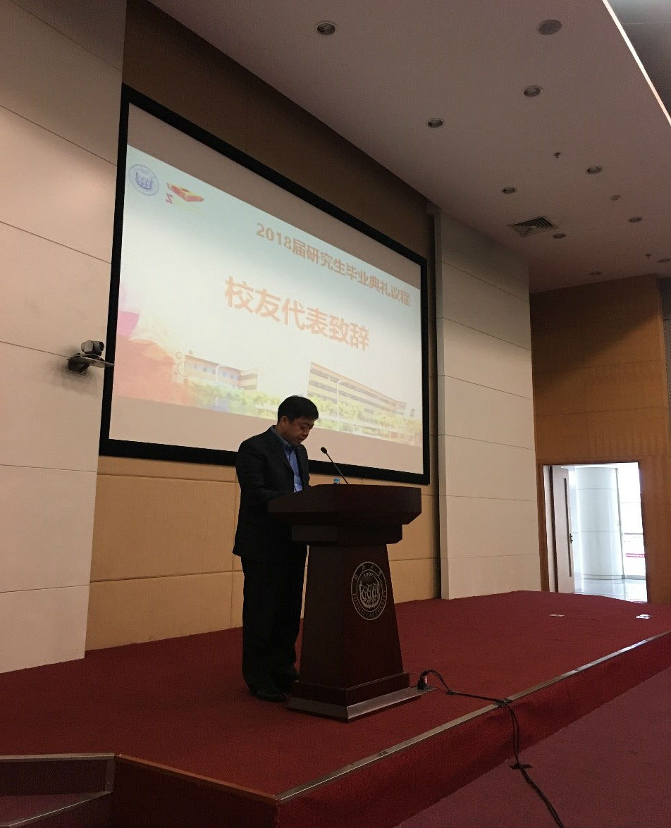 学院81级校友张量学长为同学们送上毕业寄语,学长满怀深情地追忆起同济求学时的“学生二食堂” 、“工程实验馆”,并感慨于母校的巨大变化。他以英国攻读博士学位的留学经历和职业生涯的体会,勉励同学们在新时代的环境下适应变化、不断学习新知识,苟日新、日日新、又日新。