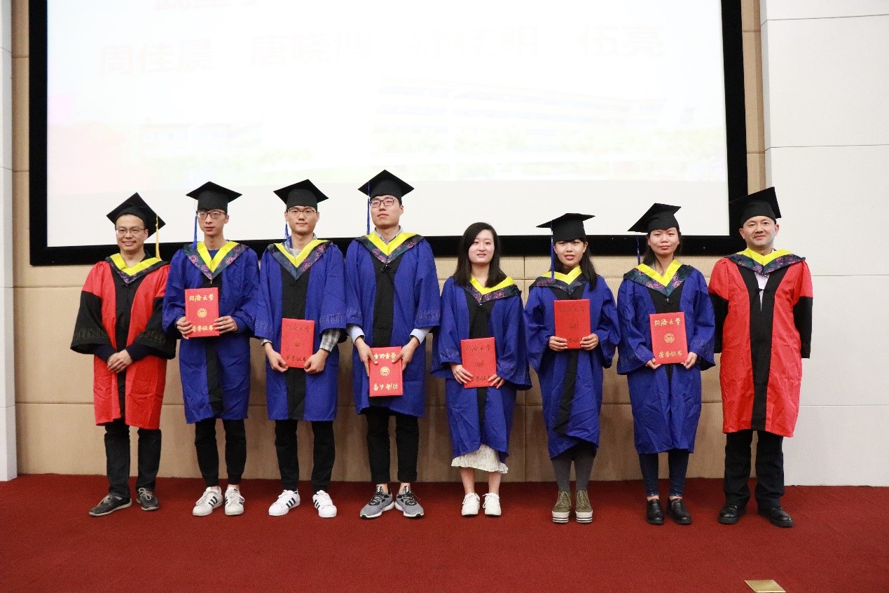 学院副院长邱军宣读了2018届研究生荣获上海市优秀毕业研究生和yl6776永利集团优秀毕业研究生名单,学院共有6名同学获得“上海市优秀毕业生”称号,7名同学获得“yl6776永利集团优秀毕业生”称号,与会领导为13名获奖同学颁发了荣誉证书。
