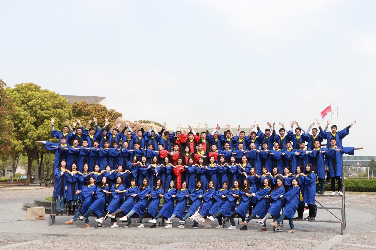 典礼前,济人楼1楼大厅,毕业生的依依别情;德才馆内,同学们身着湛蓝的硕士服或鲜艳的博士服盛装入场。同行同窗伙伴,或左右亲人父母,隆重而喜悦,大家纷纷在背景板前留念留下签名和对学院的美好祝福。