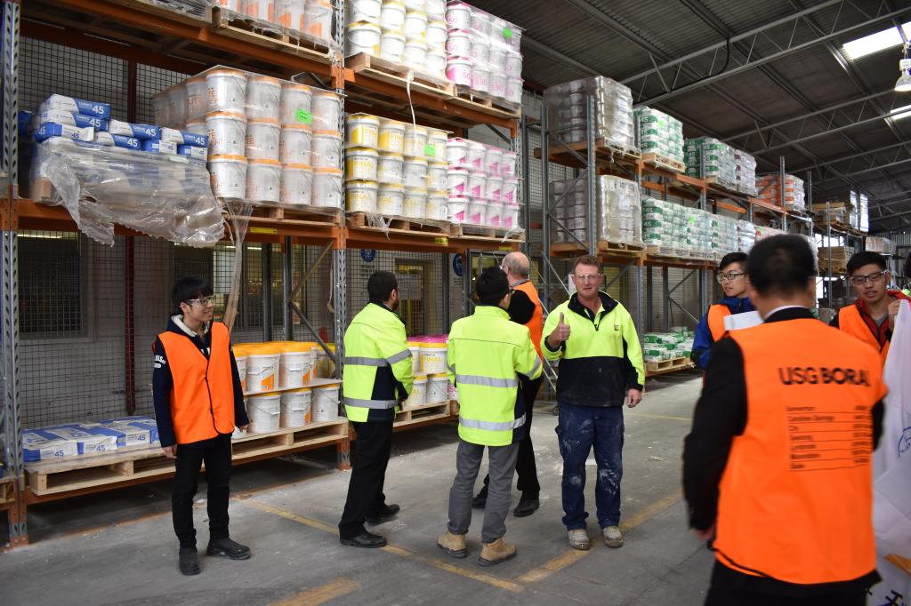 结束了对优时吉博罗石膏板专卖店的拜访,我们一行人前往了优时吉博罗在墨尔本的一家工厂进行参观。