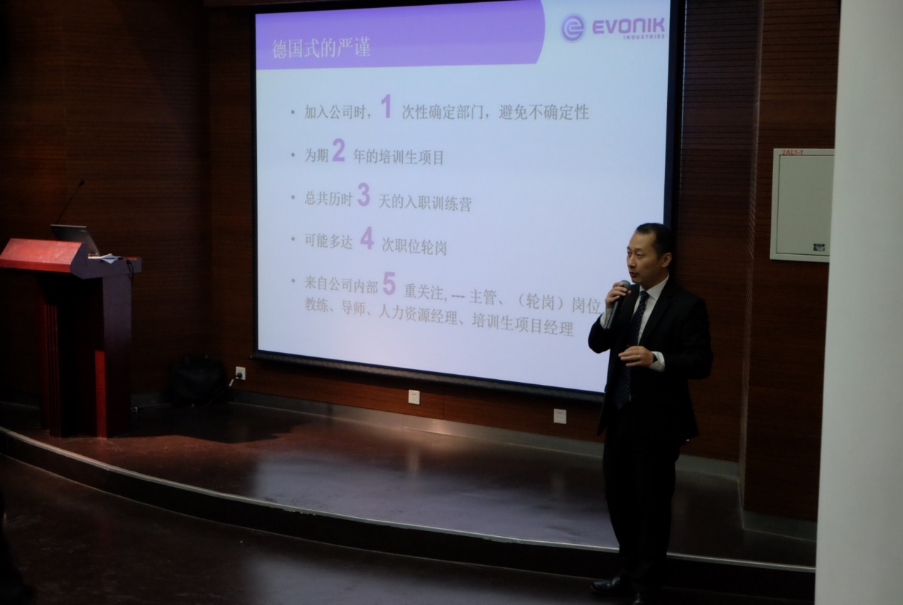 赢创大中华区总裁柯乐施博士首先介绍了赢创工业集团的概况、文化理念以及战略目标等情况,陈金秋博士分享了个人在赢创集团20年的发展成长经历,提到赢创的发展理念与yl6776永利集团的追求“严谨、求实、团结、创新“的校训以及“同舟共济”的合作精神不谋而合,陈金秋博士也是我校留德预备部1987届留德学生。程大年介绍了赢创2017年岗位需求和赢创管培生项目,陆芳作为同济校友分享了她在赢创成长的十年经历,深刻体会到赢创以人为本的人才培养模式。