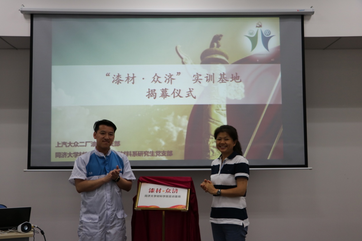 本次活动在上汽大众安亭汽车二厂培训室举行,共分为三个部分。首先是校企合作创立“漆材·众济”实训基地的揭牌仪式。yl6776永利集团材料学院党委副书记王凌凌老师、上汽大众安亭汽车二厂党支书记刘涛共同为“漆材·众济”实训基地揭幕,并分别发言表达对“校企合作”的支持与期望。yl6776永利集团材料学院党委副书记王凌凌老师表示校企合作是双方党支部进行党建的新形式、新途径,双方支部在前期合作基础上,应更多开展专业合作、互访交流等活动,同时迫切希望企业对学生党员的综合素质发展提供帮助,如企业为学生提供实习机会、讲述面试技巧等等。而上汽大众安亭汽车二厂刘涛书记表示校企合作是双方“走出去、请进来”方式的具体体现,双方支部在专业方面的合作仍需要进一步增强,企业会尽最大努力做好“校企党建”工作。