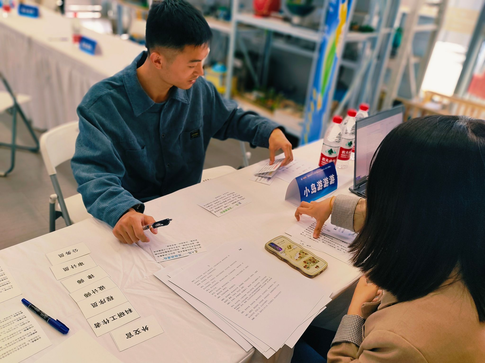 除了招聘和简历指导环节,此次活动还贴心地设置了“职涯漫漫探前路”特色互动摊位。“小岛游游游”以霍兰德职业兴趣测试为灵感,邀请同学选择最感兴趣的岛屿,探索适合自己的职业方向;“职业猜猜猜”则以寓教于乐的方式考验同学对不同职业的了解与认知;“地图圈圈圈”鼓励大家圈出心仪的就业城市,思考人生规划;“锦囊话话话”引导同学给5年或10年后的自己写下寄语,勾勒职业蓝图。同学们积极参与,在轻松愉悦的氛围中邂逅全新的自己,绘就生涯规划的篇章。