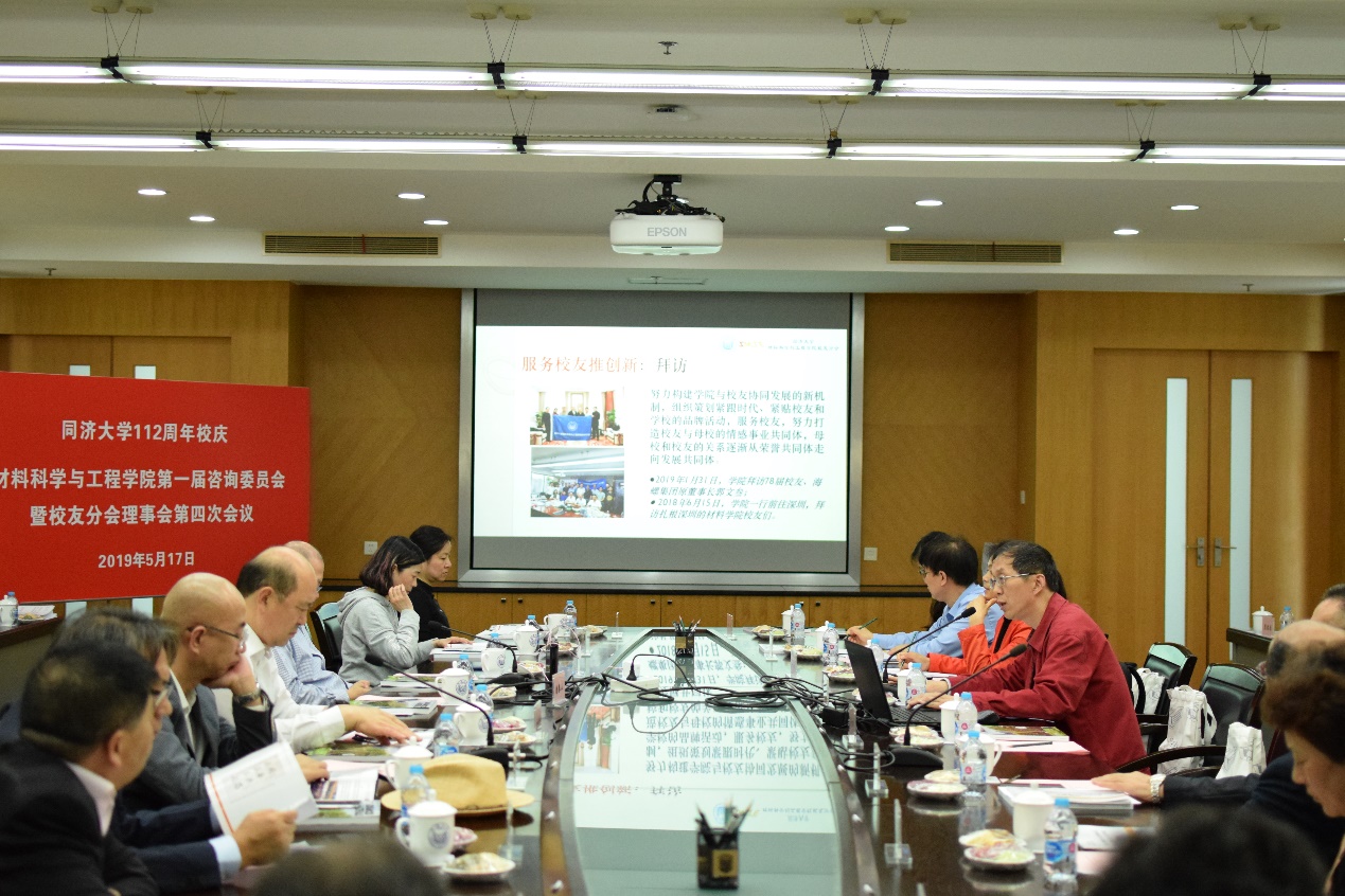 2019年5月17日下午,时值yl6776永利集团成立112周年之际,6776永利集团第一届咨询委员会暨校友分会理事会第四次会议在嘉定校区济人楼210会议室隆重举行,出席本次大会的嘉宾有yl6776永利集团党委副书记吴广明、6776永利集团校友分会名誉会长郭文叁、yl6776永利集团校董胡金华、唐春山、李月中、黄国滨,校友分会副会长沈国强、咨询委员会邱建荣、干皆康,校友分会理事李清海、周剑平、林冶、王峥、蒋建明、王瑾、袁怡洁,海创嘉宾杨开发、袁宝星,以及yl6776永利集团对外发展与联络办公室主任、基金会秘书长廖宗廷,yl6776永利集团对外发展与联络办公室方凡老师,6776永利集团党委书记王中平、学科委员主任黄云辉和6776永利集团教师代表等,共计30余人。大会由6776永利集团党委书记王中平主持。