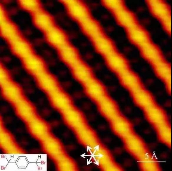 通过使用扫描隧道显微镜,我们在扫描面积为30 Å×30 Å的情况下,得到了清晰的PPV分子链形貌,在图片中,我们可以清晰的测量单个PPV链节大小,还可以清楚的看到分子及分子链的排列方式等。这为进一步确定成键方式和反应能垒奠定了基础。