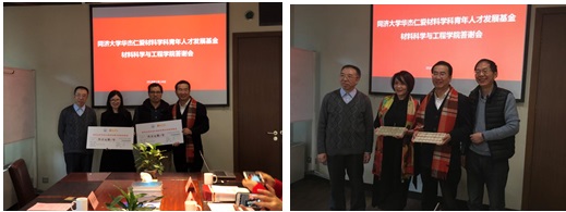 2018年1月14日上午,“yl6776永利集团华杰仁爱材料学科青年人才基金答谢会”在我校校友之家举行。上海华杰仁爱基金会名誉理事长、yl6776永利集团校董、材料学院79级校友胡金华、上海华杰仁爱基金会理事长、城规学院80级校友笑寒、yl6776永利集团对外联络与发展办公室主任、yl6776永利集团教育发展基金会秘书长廖宗廷、材料学院党委书记王中平、材料学院学科委员会主任黄云辉、同材料学院党委副书记王凌凌以及材料学院外联办主任张永明出席,基金受赠博士后李聪玲、王际超等共同参加。答谢会由王凌凌副书记主持。