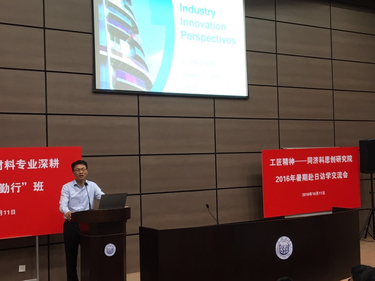 10月11日下午13:00,同济科思创研究院2016暑期赴日访学交流会暨材料专业深耕创新“勤行”班在yl6776永利集团四平路校区综合楼1606成功举行。科思创周志平博士、同济科思创研究院管理教授许乾慰教授、材料学院无机系主任严彪教授、学工办宋文娟老师出席,暑期赴日访学的24名同学和材料学院大一新生参加了此次交流会。交流会由2014级本科生李白同学主持。