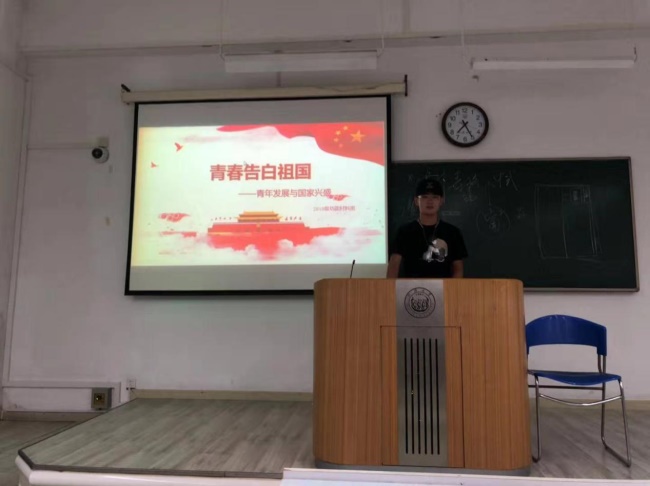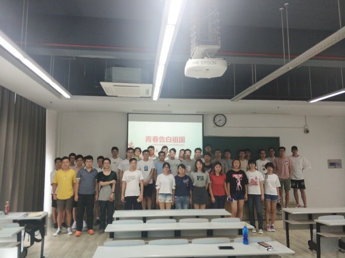 2019年9月6日,2016级本科材料2班团支部组织进行了“青春告白祖国”活动之“我向新时代中国告白”主题班会。同学们以改革开放以来家乡的千变万化、国家综合国力提高等为内容,向全体同学做了感悟分享,带领大家一起向祖国告白。