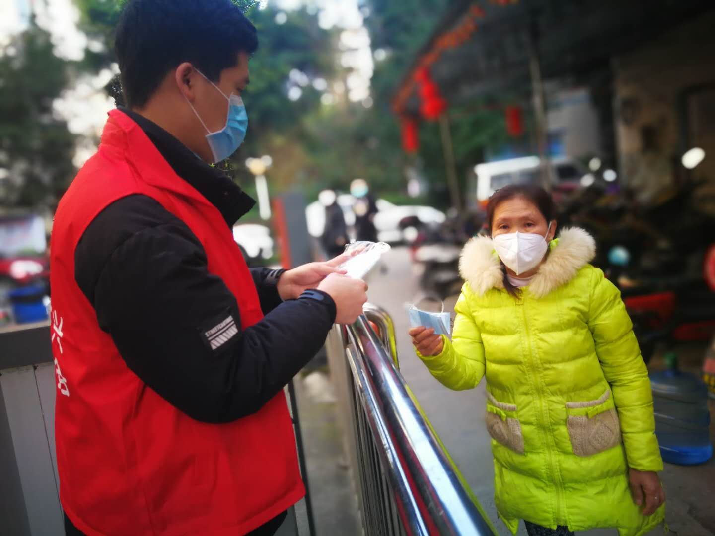 ——“好的好的,太感谢了,我要去医院透析,再加上肺上又有点小毛病,又买不到口罩,贵的口罩我也舍不得买,就只有每天带个布口罩,听他们说这种不得行,但也没有办法。现在社区给我们送口罩,太感谢了!”