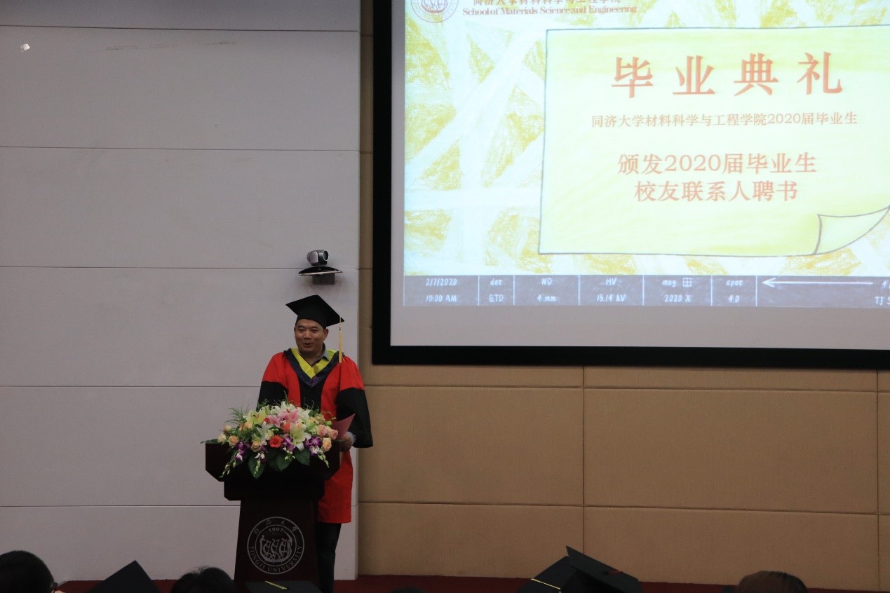 学院外联办主任张永明老师宣读了2020届本科及研究生校友联系人名单,张永明老师和班主任老师们为4位本科校友联系人和4位研究生校友联系人颁发了聘书,希望同学们以材料学院为家,心系母校,常回家看看。