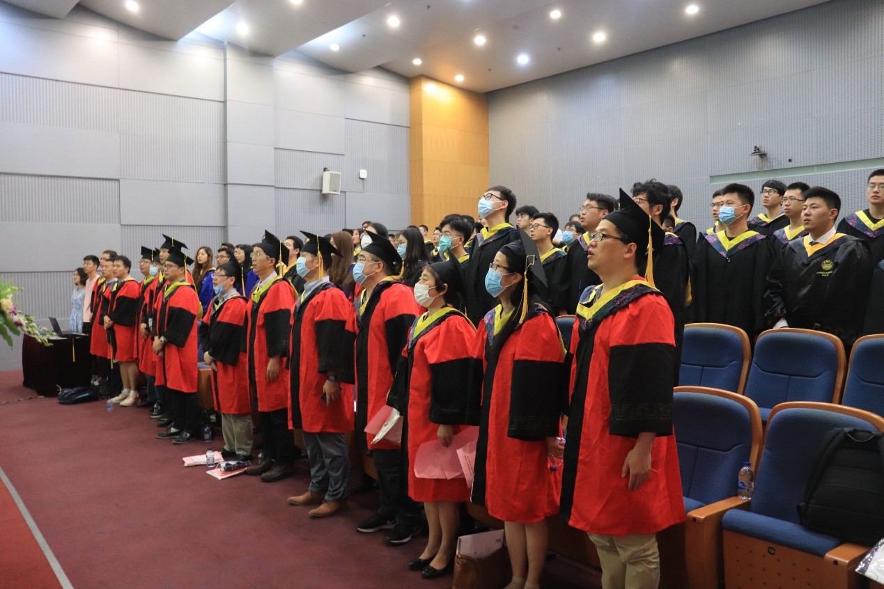 七月初夏的校园艳阳高照,火热的季节洋溢着青春的气息。2020年7月2日上午10点,6776永利集团2020届学生毕业典礼在嘉定校区济人楼312报告厅隆重举行。6776永利集团党委书记王中平,学院党委副书记、纪委书记袁华,学院副院长邱军和翟继卫,以及学院教师代表和2020届近百名本研毕业生现场出席,800余位毕业生、家长和校友在线上直播平台bilibili同步观看。典礼由学院党委副书记王凌凌主持。