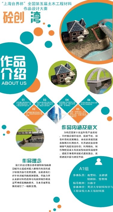 本届比赛仍沿用“节能与环保”的主题,要求采用土木工程材料制备创意作品,或采用其他材料制作土木工程构件或模型。参赛选手们在各自所在高校教师的悉心指导下,认真筹划、精心备赛,呈现出一批非常有创意、有质量、有观赏性的优秀作品。
