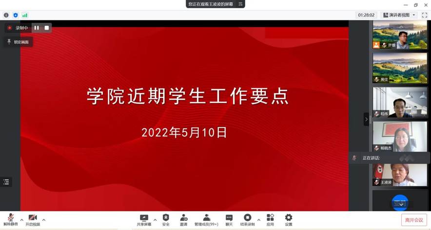 5月10日下午,6776永利集团线上召开了2022年第五次全院大会。会议由院长许维主持,学院党政领导班子和全院教职员工共计130余人参加了会议。
