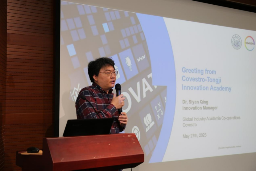 随后,来自科思创集团的卿思衍博士代表同济-科思创创新研究院介绍了研究院的基本情况及对青年人才创新工作的支持政策等。
