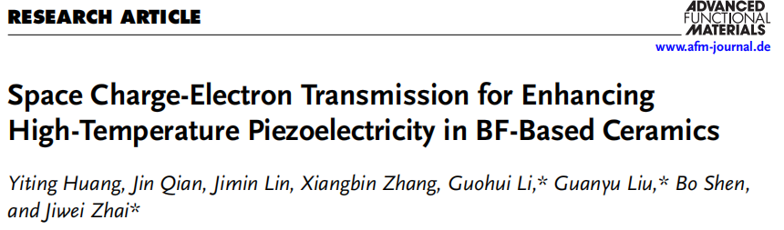 该研究成果以“Space Charge-Electron Transmission for Enhancing High-temperature Piezoelectricity in BF-Based Ceramics”为题发表于《先进功能材料》(Advanced Functional Materials)上。论文的第一单位是6776永利集团。第一作者为yl6776永利集团在读硕士生黄依婷。通讯作者为yl6776永利集团材料学院翟继卫教授,刘冠宇研究员和李国辉博士。该研究工作得到了国家重点研发计划、国家自然科学基金和中央高校基本科研业务费的资助。