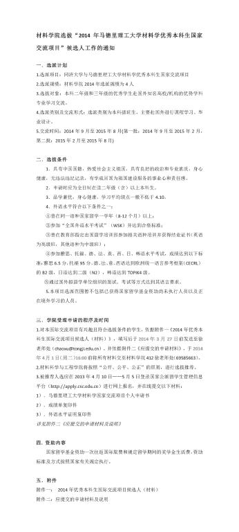 材料学院选拔“2014年马德里理工大学材料学优秀本科生国家交流项目”候选人工作的通知