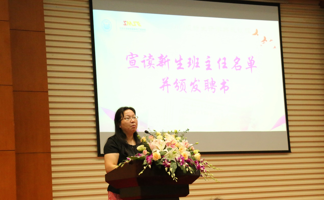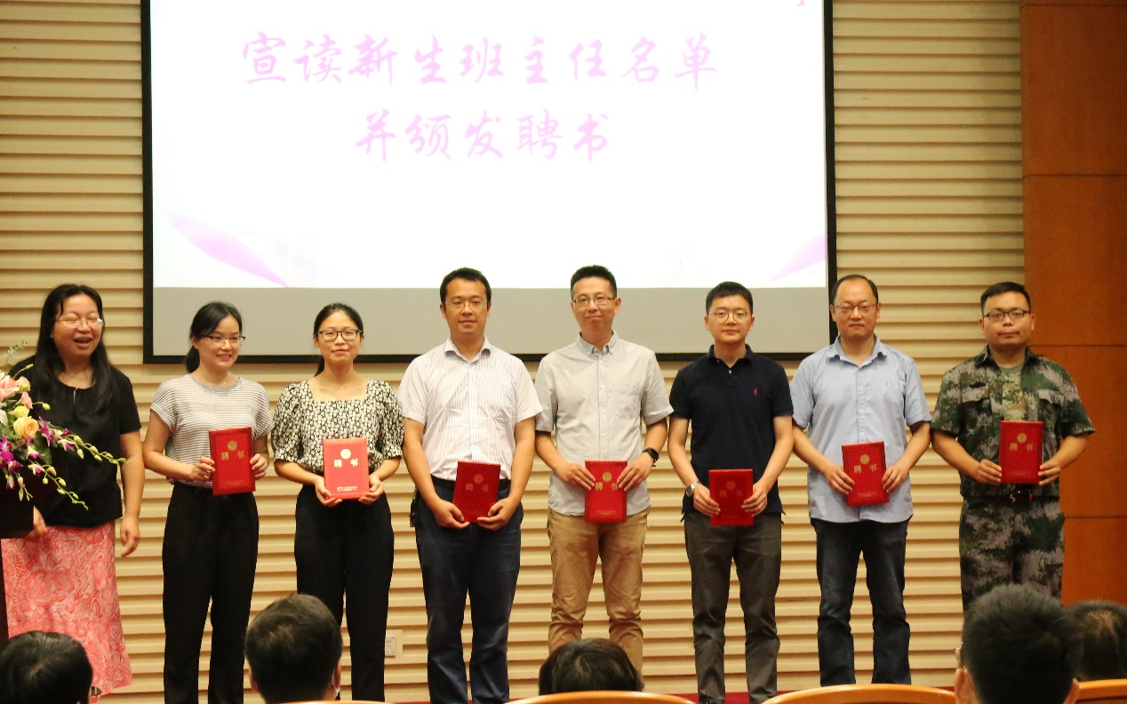 学院党委书记杨晓杰老师宣读了2021级本科生、研究生新生班主任名单,代表学院衷心感谢活跃在教学和科研表第一线的优秀教师担任班主任,并向新任班主任颁发了聘任证书。