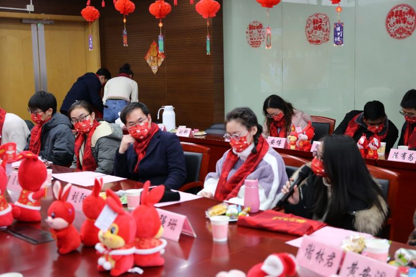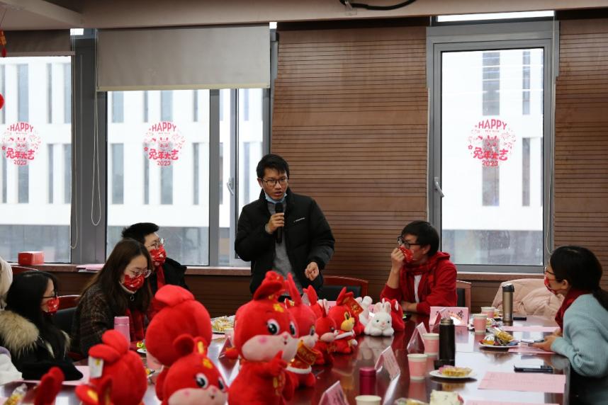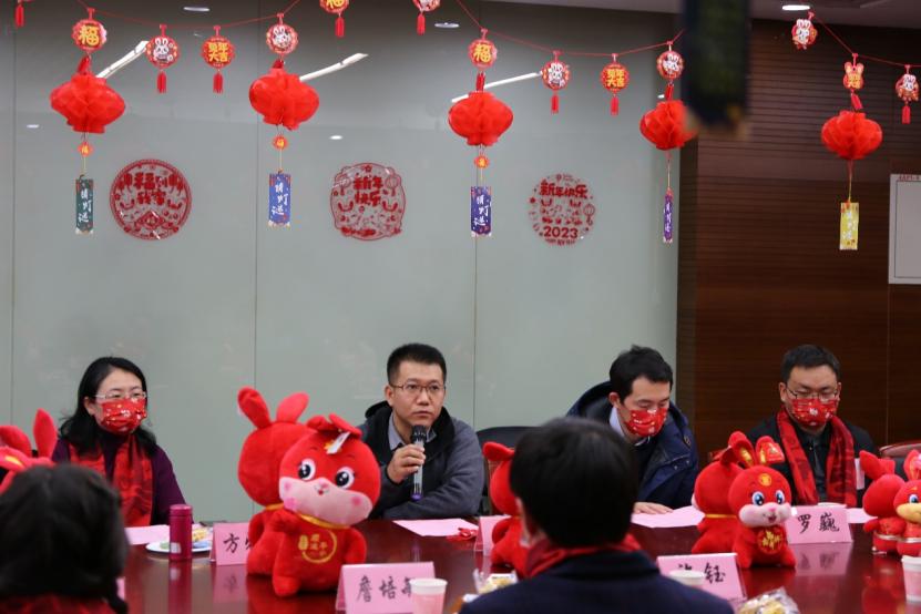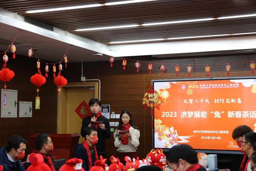 祥虎昂首高歌去,玉兔迎春敛福来。2023年1月14日,6776永利集团举行“礼赞二十大,材行启新篇”寒假留校学子慰问系列活动。学院本硕博共计43人,因科研和学习需要,选择留校过年。为了令留校学子真切感受同济材料大家庭的温暖和关怀,学院依托异彩纷呈的活动向同学们致以诚挚的新春祝福,传递育人温度,厚植家国情怀,汲取奋进力量,营造祥和喜庆的节日氛围。