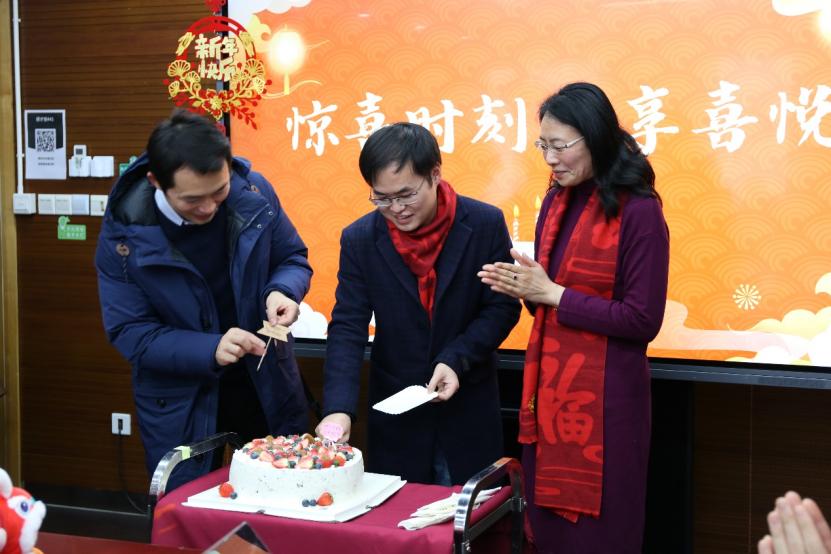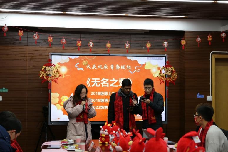 大展风采环节,由2018级博士生周嘉予、2019级博士生唐婧和2022级博士生安博共同带来歌曲《无名之辈》,为老师与同学送来新春祝福,希望在座的所有人在新的一年怀揣梦想又脚踏实地,创造属于自己的辉煌;2020级的本科生刘金坤与哈冶洋为大家演唱歌曲《春风十里》,传递思乡之情,彰显青春活力。在温馨欢乐的气氛下,大家一同为恰逢今年除夕生日的2020级博士生詹培敏同学庆生。学院精心准备了精致唯美的蛋糕和礼物,给留校的学子送上生日的祝福和慰问。在在场师生的祝福中,同学许下生日心愿,并表达了对学校和学院的由衷感谢,以及对同学们的真挚祝愿。共话年俗、追忆变革的现场互动环节同样激发了同学们的热情,来自五湖四海的同学纷纷分享家乡新时代十年的发展变革以及年俗的变迁和专属记忆,展现了神州大地多种多样庆祝春节的习俗,彰显着中华传统节日文化丰富的表现形式与源源不断的生命力。在乐猜灯谜、喜迎新春的活动中,现场全员参与、热情活跃、脑洞大开,大家依次分享各自手中的灯谜及答案,在欢声笑语中传递温情、启迪智慧,通过灯谜游戏彰显中华文化的博大精深,体现材料学子丰富的想象力和宽广的知识面。