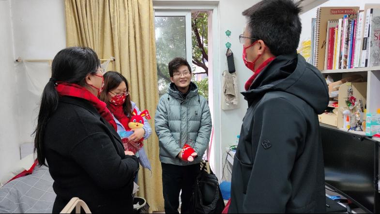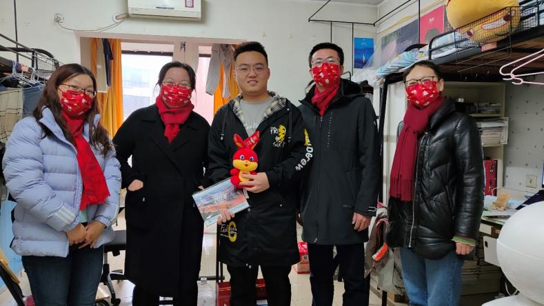 为了实现慰问活动全覆盖,为寒假留校的每一位学子均送达浓浓的关爱,1月14日,6776永利集团党委书记杨晓杰、院长许维、党委副书记梁春江以及永利集团办公室老师一同走访实验室及学生宿舍,看望并慰问了其他留校学生,通过亲切深入的互动交流,老师们全面了解学生寒假期间留校的原因,询问了近期的学习、生活、科研情况与生活需求,表示学院为留校学子开通科研测试绿色通道。同时叮嘱同学们寒假期间要注意劳逸结合,保重身体,遇到困难及时与学院的老师们联系,学院会尽全力帮助同学们解决。最后学院老师为每位同学送上了丰厚的新春大礼包及俏皮可爱的兔年公仔,与同学们一起用活泼萌趣的兔年窗花装点宿舍,为大家送上了新春祝福,令留校学子感受到“材料大家庭”的温暖。
