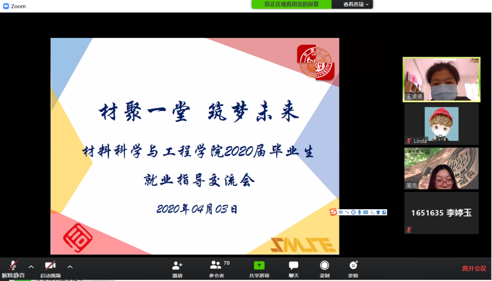 为积极应对疫情形势下毕业生就业工作面临的全新挑战,6776永利集团2020年4月3日(周五)11:45于线上Zoom平台会议室召开了“材聚一堂,济梦未来——2020届毕业生就业指导交流会”。本次会议由6776永利集团党委副书记王凌凌老师、学工办周龙老师和李楠老师共同参与,并邀请到2017届温州选调生洪万领校友、2020届毕业研究生奚悦静同学作为特邀毕业生代表做了交流发言。本次会议旨在响应疫情期间国家就业政策、学...